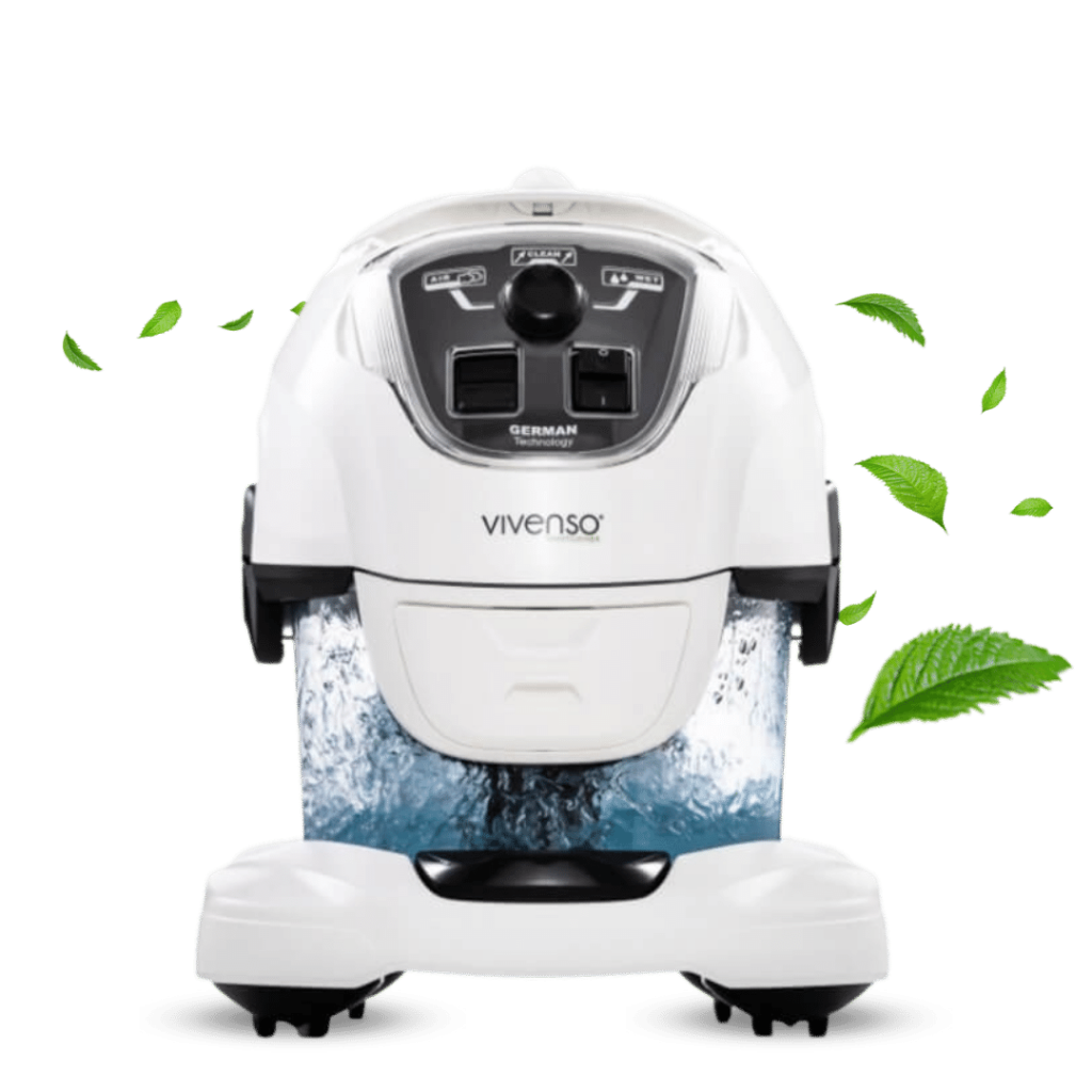 O VIVENSO conta com um separador de partículas e utiliza apenas água como filtro. Retém totalmente o pó aspirado.